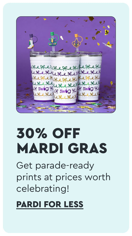 This design reminds me of the time I was in New Orleans for the Mardi Gras parade. Yes indeed I sure did stand there and tell Throw me somethin' Mistah! I love this cup for it's size and for keeping my drinks at the right temperatures hot or cold!